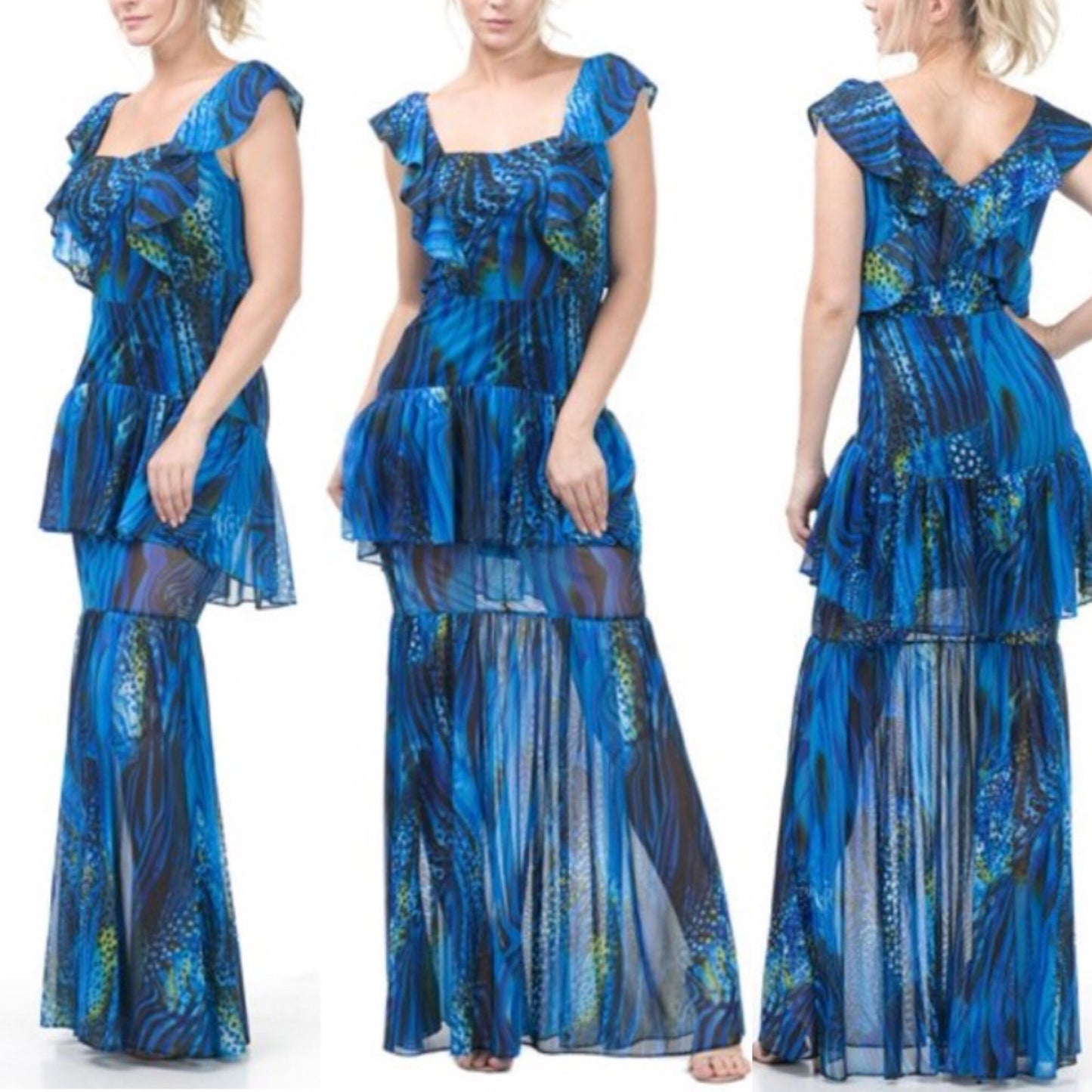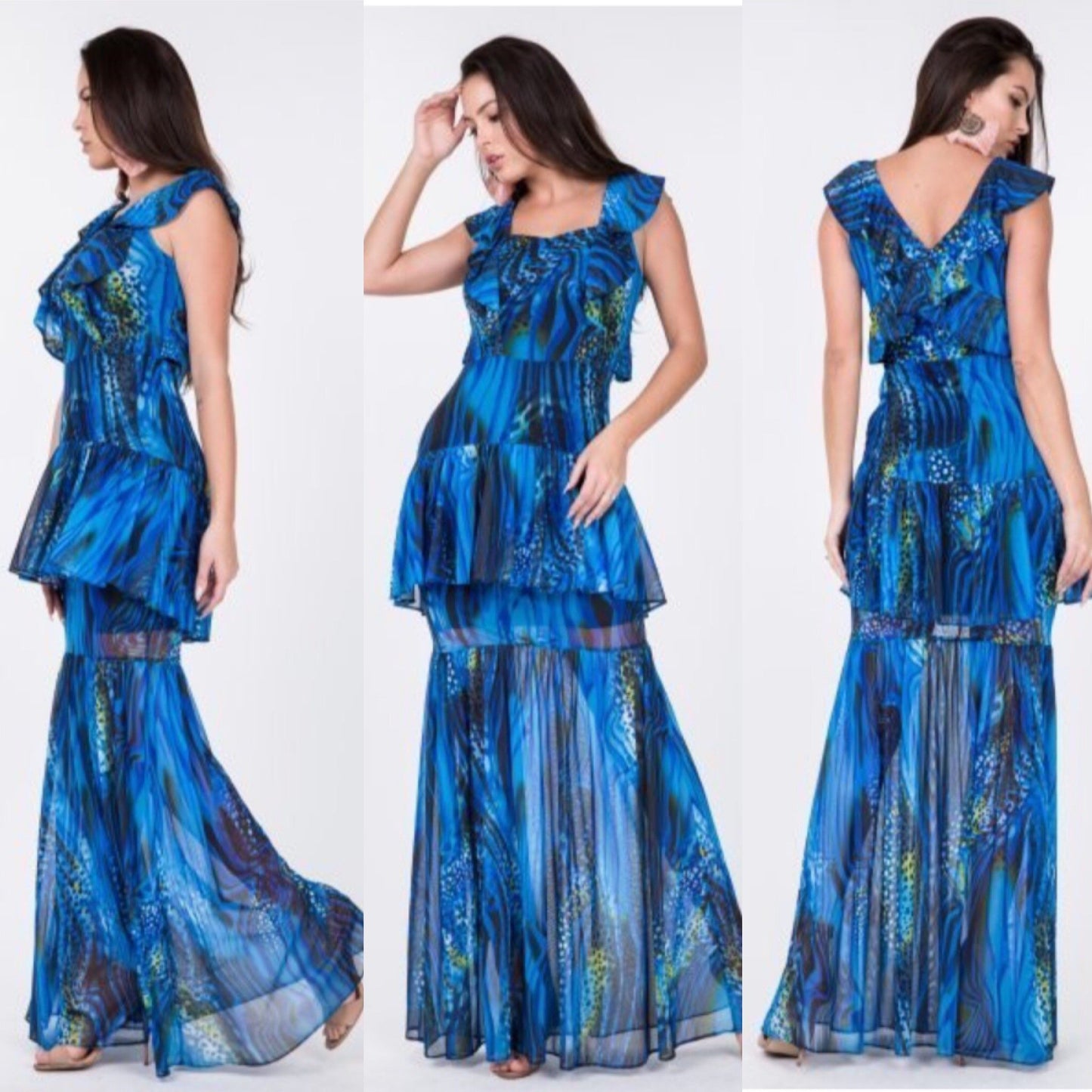 Vestido largo con volantes acuáticos