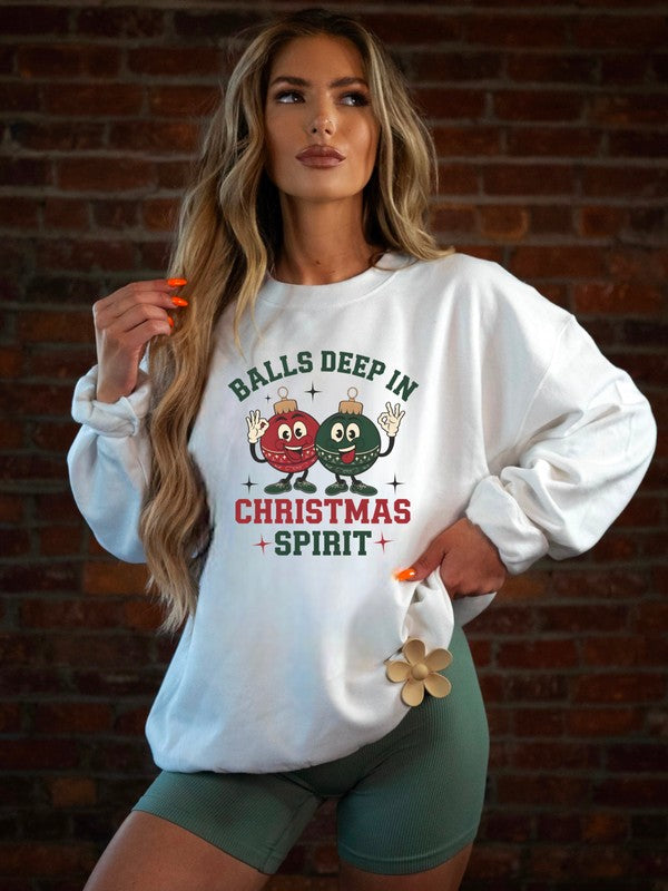 Balls Deep in Christmas Spirit Graphic Sweatshirt