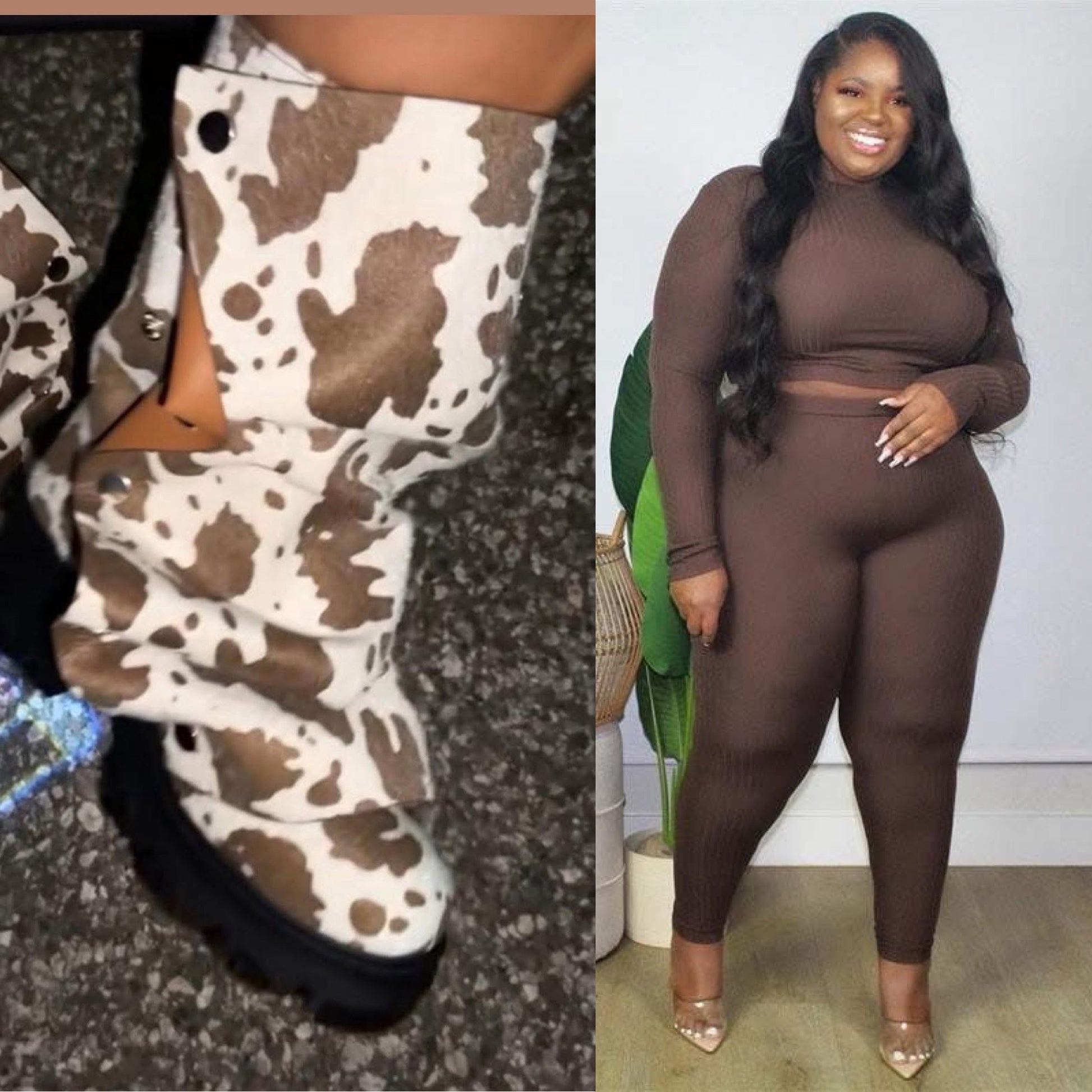 “Step into bold style with our Cow Print Chunky Boots Featuring a statement-making print, lug sole, and trendy slouch detail — these boots are the perfect mix of western chic and streetwear edge. Pair them with jeans, skirts, or dresses for an instant outfit upgrade!”