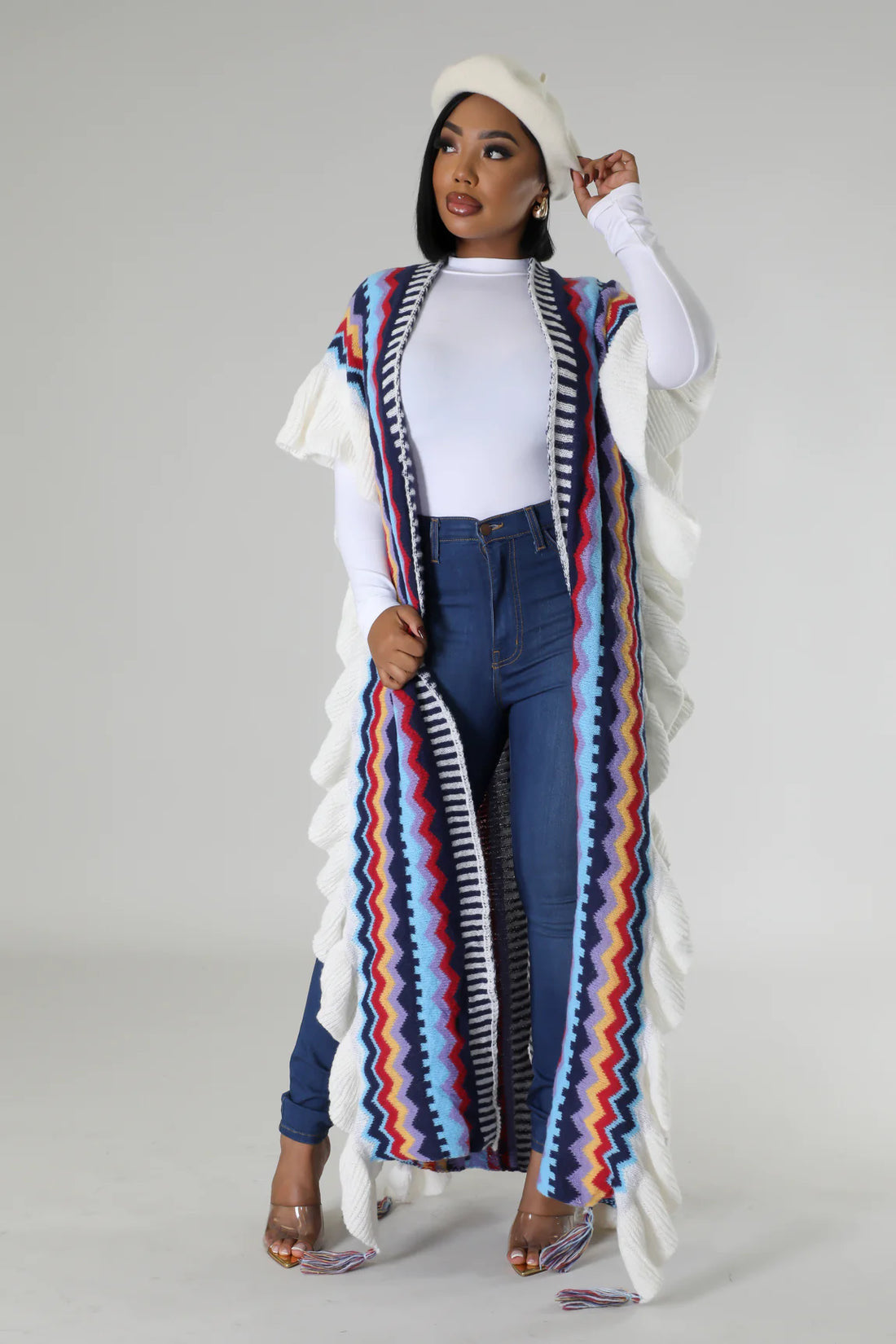 GIRL BOSS | OPEN SLIT RUFFLE LONG CARDIGAN