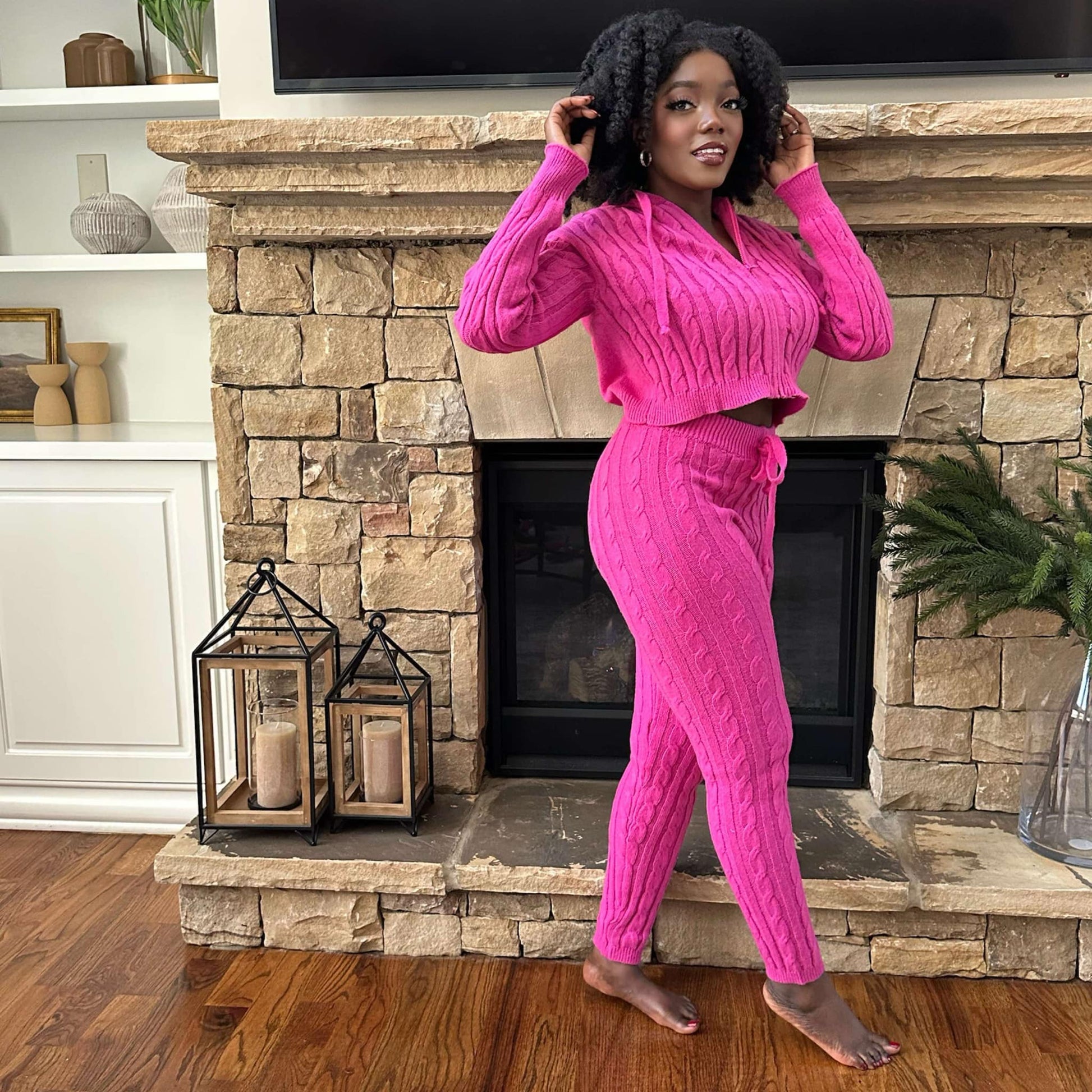 Stay cozy and coordinated with this cable hoodie sweater 2-piece set, designed for warmth and effortless style. Featuring a soft cable-knit texture, this solid set includes a relaxed-fit hoodie and matching bottoms for a polished yet comfortable look. The fabric offers gentle stretch and warmth, making it ideal for cooler days and casual layering. With its clean lines and basic design, this versatile set transitions seamlessly from lounging at home to running errands in style. A must-have for anyone seeking comfort without compromising on appearance.