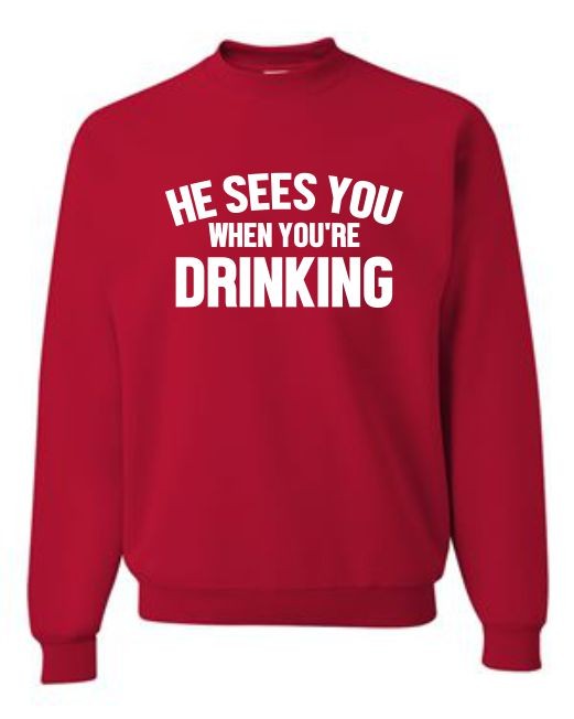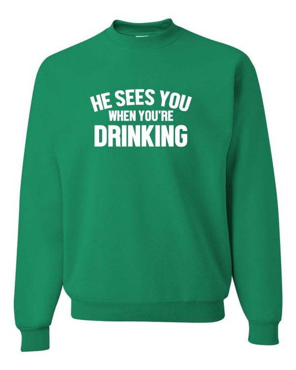 Él te ve cuando bebes una acogedora sudadera con cuello redondo