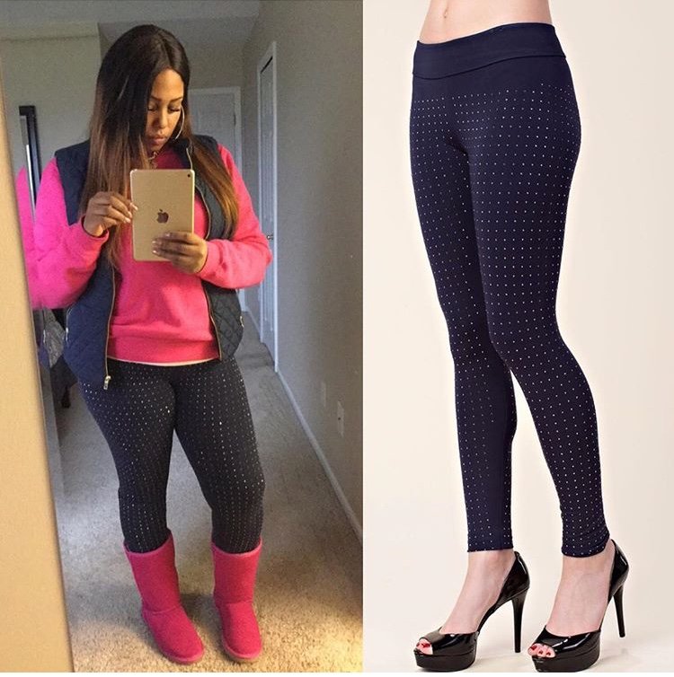 ¡Preciosos leggings con tachuelas en color azul marino o negro! ¡Diseño integral con elasticidad perfecta! Las tachuelas brillan mientras te mueves. ¡Combínalo con tu body y cárdigan favoritos! ¡¡Posibilidades infinitas!!