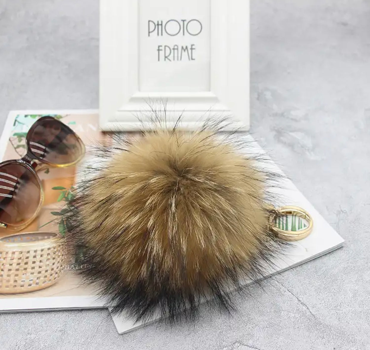 Llavero de alta calidad con pompones de piel auténtica y esponjosa de 15cm