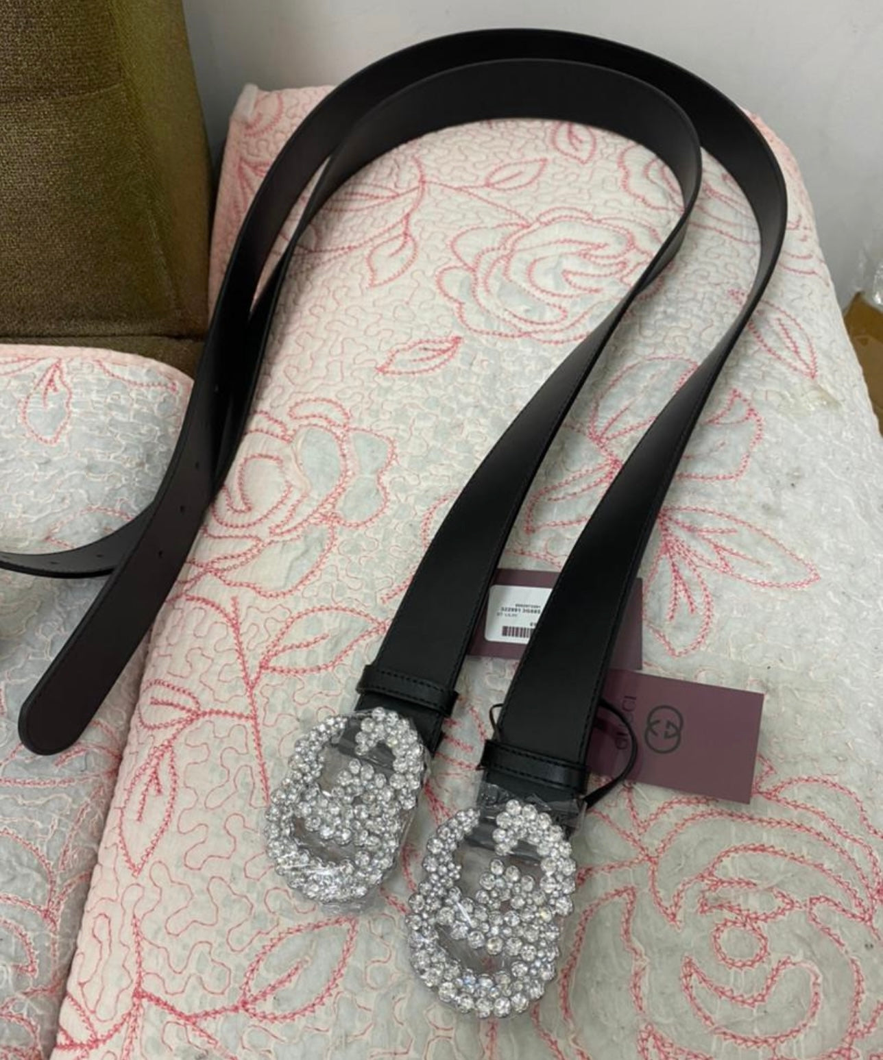 Cinturón de piel con cristales brillantes y hebilla de doble G