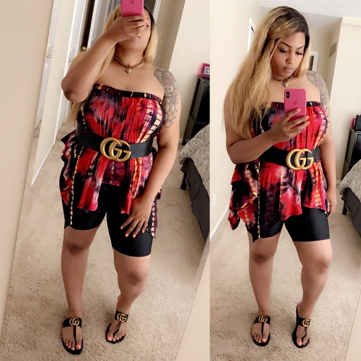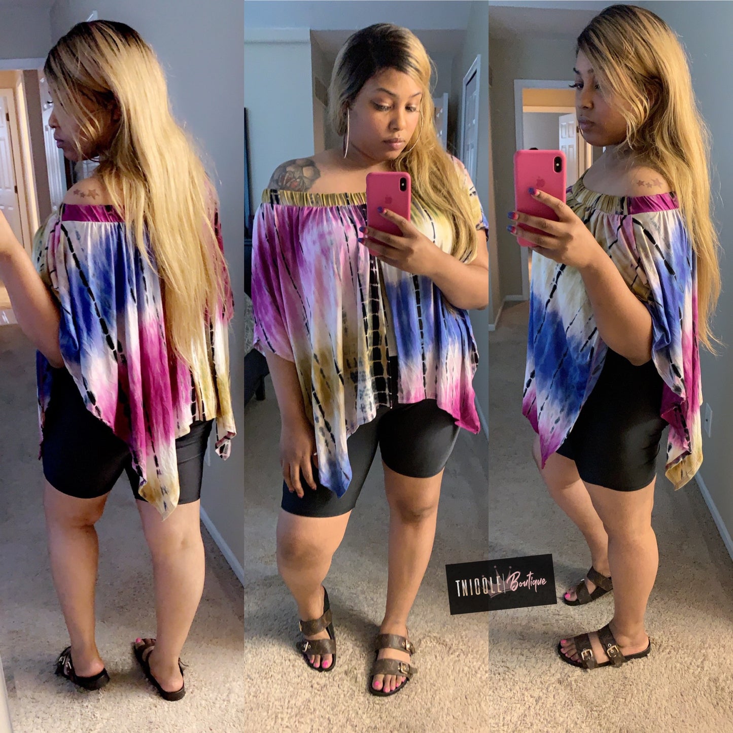 Top en capas con hombros descubiertos. ¡Combínalo con nuestros pantalones cortos de motociclista de nailon para una apariencia elegante!