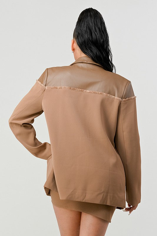 Salga con estilo con este moderno conjunto de dos piezas. Confeccionado con un material de PU duradero, este conjunto de chaqueta y falda marrón presenta mangas largas, cierre de botón frontal y detalles en contraste. La falda incluida presenta un diseño fruncido para darle más estilo. Perfecto para cualquier ocasión, te verás y te sentirás increíble. Importado.