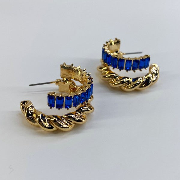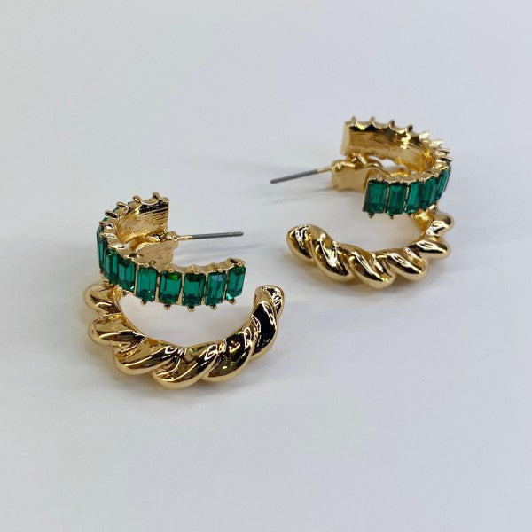Twisted Baguette Style Stone Earrings