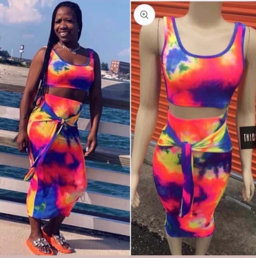 Conjunto de dos piezas súper lindo. Gran elasticidad y se puede usar de varias maneras.