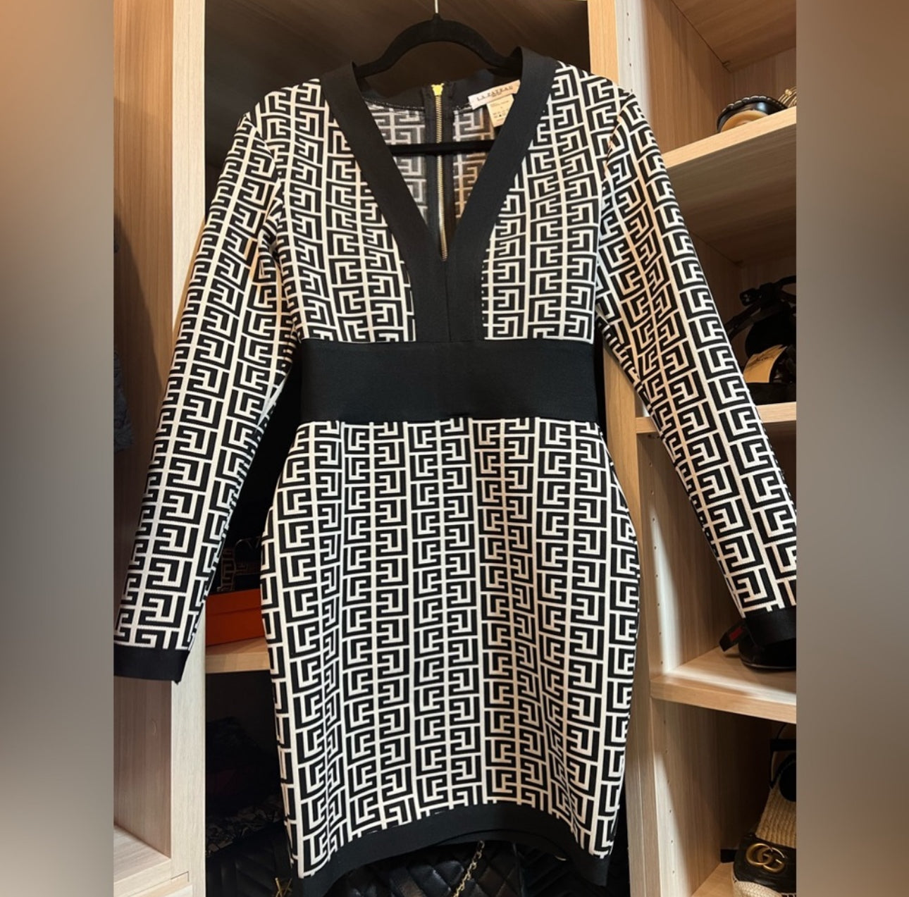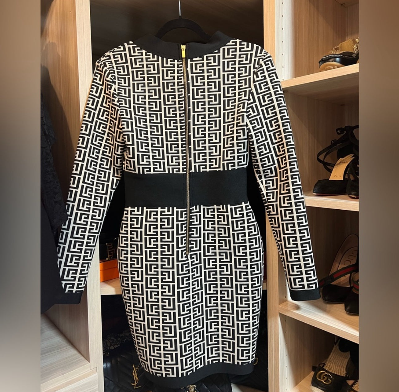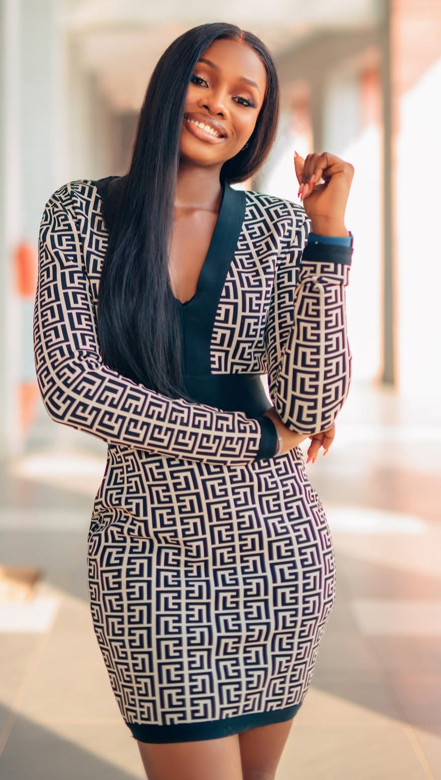 BLACK AND WHITE PRINT BANDAGE DRESS