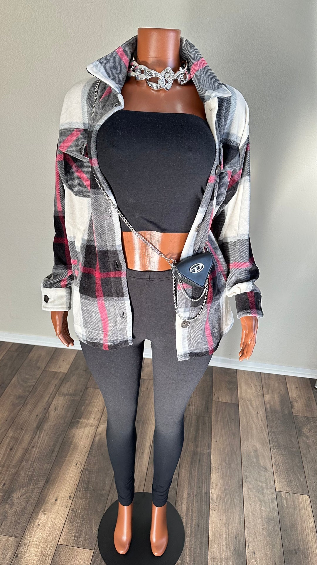 SOLD AS A 3 PIECE SET ONLY FLANNEL, LEGGING AND TUBE TOP