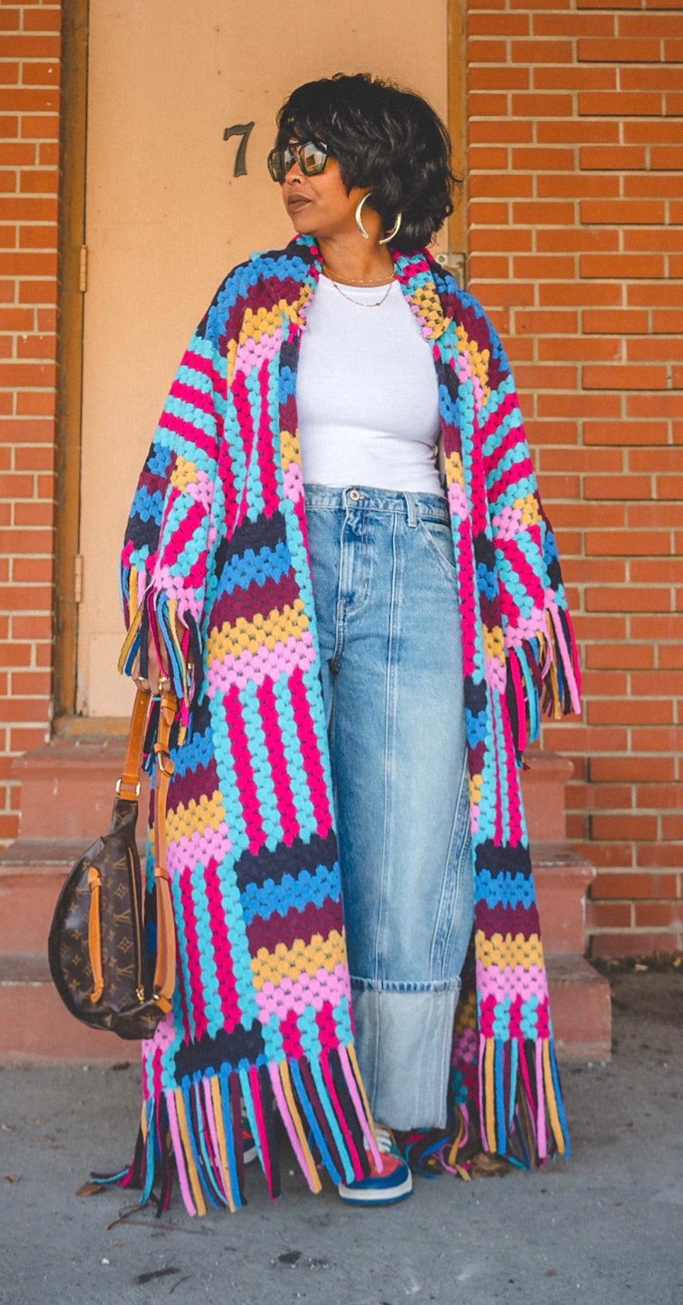 Wrap yourself in cozy color! This vibrant patchwork-style cardigan features bold, eye-catching hues and dramatic wide sleeves that instantly elevate any outfit. Designed with playful fringe detailing and an easy open-front silhouette, it’s the perfect statement layer for year-round style.