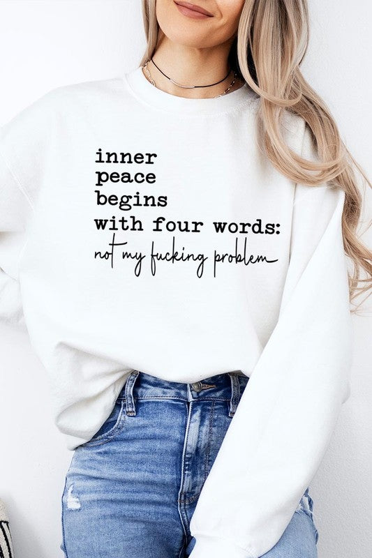 Inner Peace Begins With Four Words Graphic Plus Sweatshirt. **PLUS SIZE**