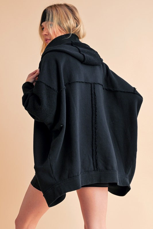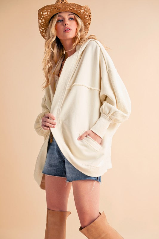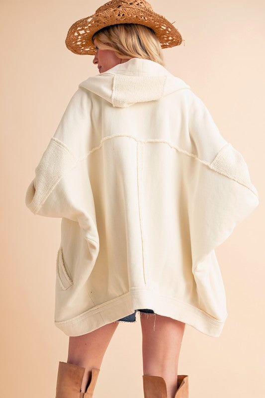 Janely Hooded Cardi is crafted in soft cotton with an oversized fit. It features an exaggerated hood and drop-shoulder sleeves, offering both style and comfort.