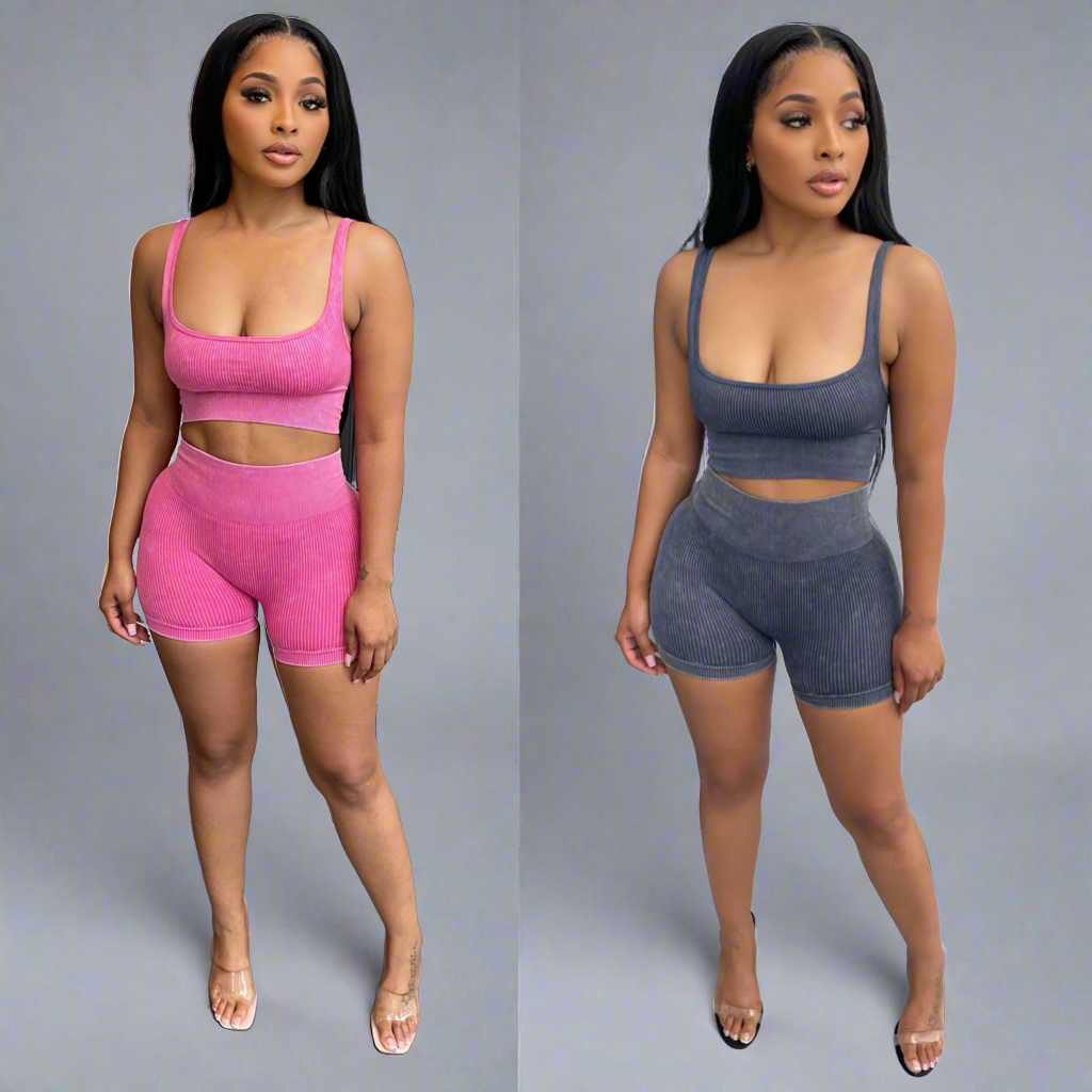Get ready to turn heads and make a statement with our Washed Seamless Basic Tank Top and Shorts Set. Add it to your cart now and experience the perfect blend of fashion and comfort!