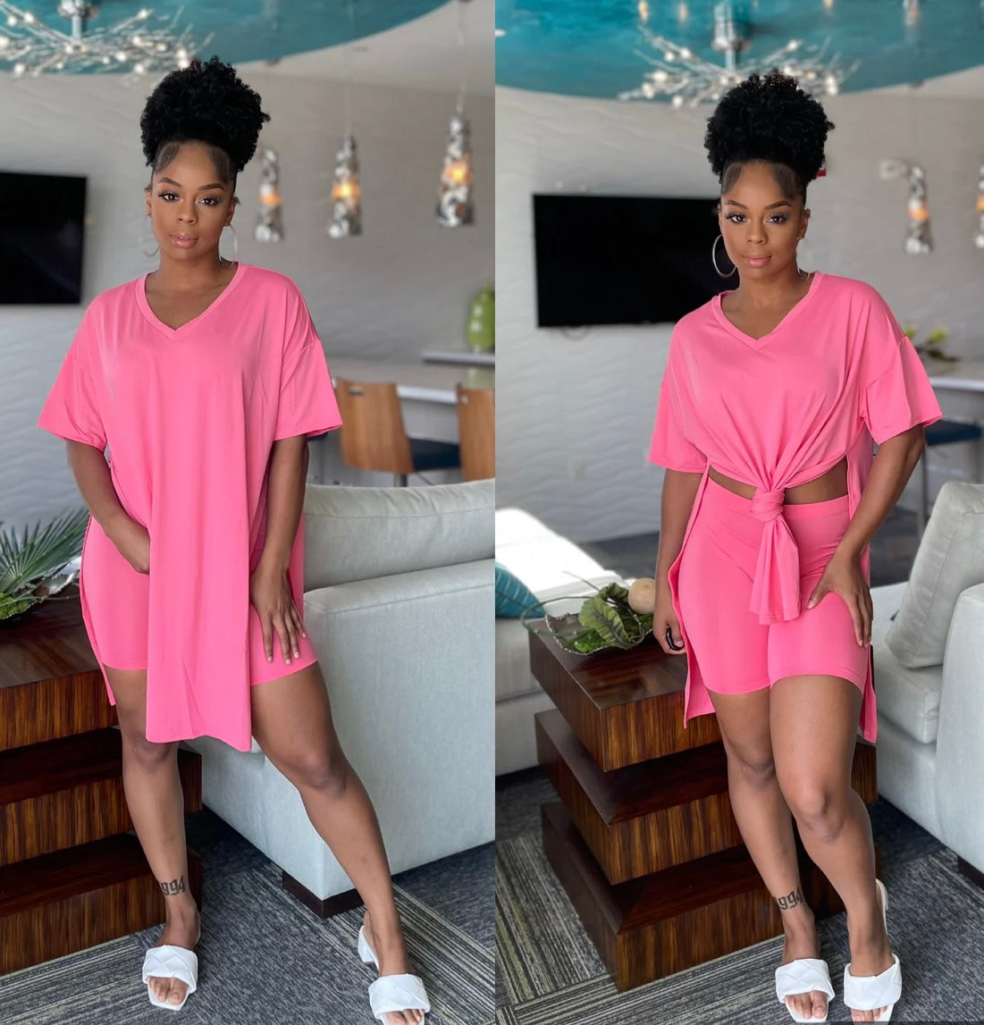 Le confort rencontre le mignon. Le haut surdimensionné a des fentes hautes et peut être porté avec un nœud ou comme un t-shirt normal. Pimentez-le et portez votre haut « hors de l’épaule »