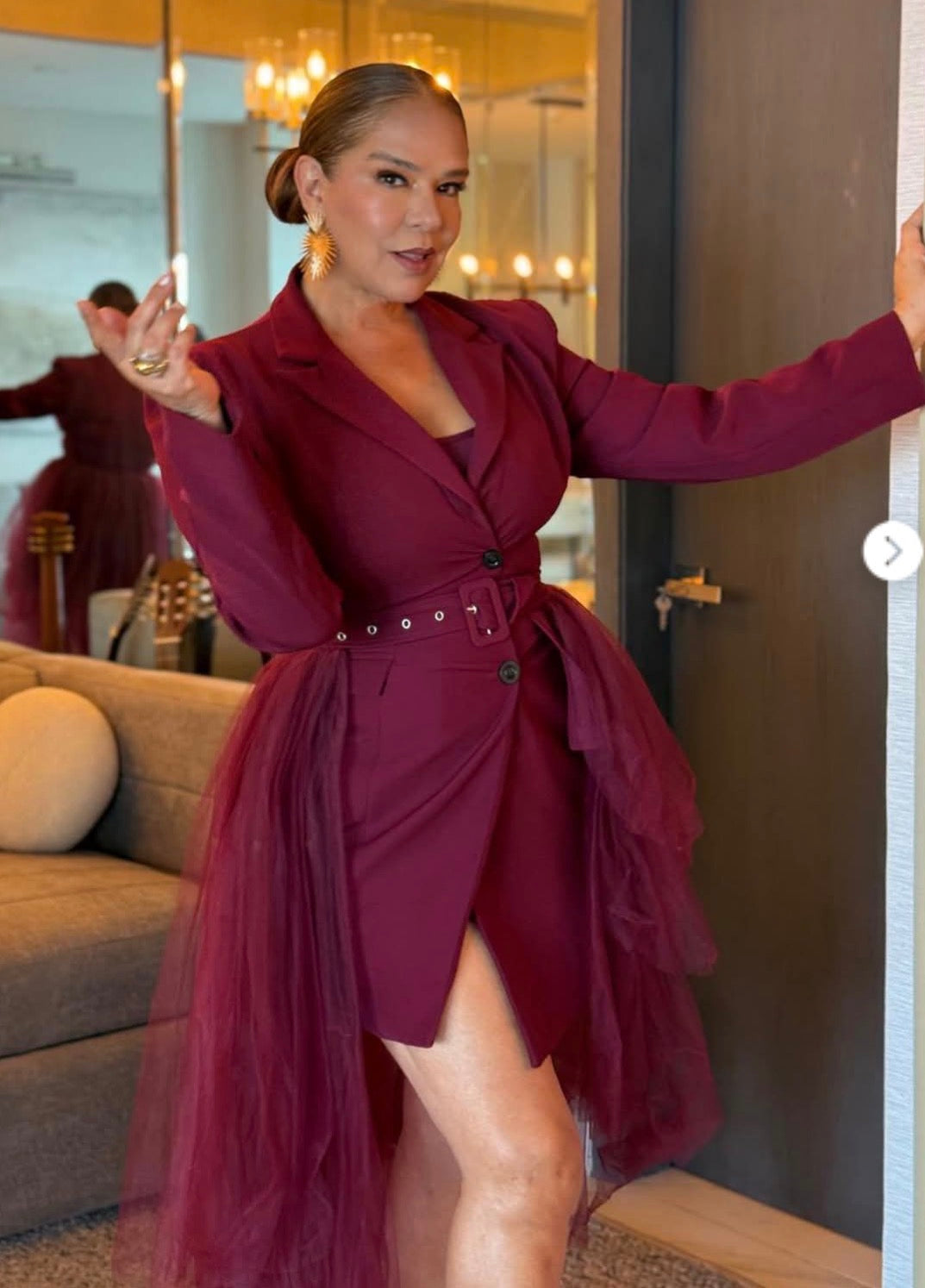 Baddie in Burgundy | Tulle Overlay Blazer Dress