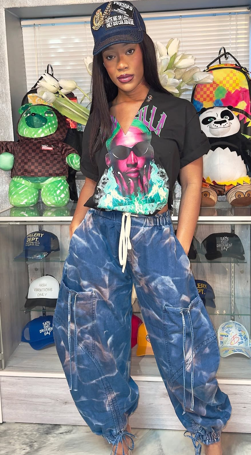 These pants feature a relaxed, oversized fit with an adjustable drawstring waist and cuffs for a customizable look. Crafted from high-quality denim, they provide both comfort and durability. The unique cargo-style pockets add functionality and a trendy, streetwear-inspired vibe. Perfect for pairing with a crop top and heels or a casual tee and sneakers, these versatile pants will make a bold statement in any outfit. Experience the perfect blend of style and utility with the Urban Chic Drawstring Denim Cargo Pants.