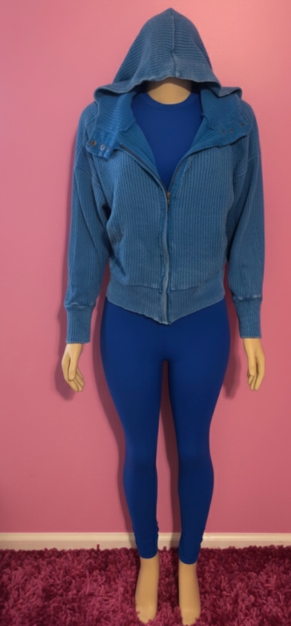 Meet your new go-to set for effortless style and all-day comfort. This 3-piece outfit includes a sleek fitted sHirt, matching high-stretch leggings, and a cozy waffle-textured zip-up hoodie. Perfect for running errands, traveling, lounging, or dressing up with sneakers or boots.