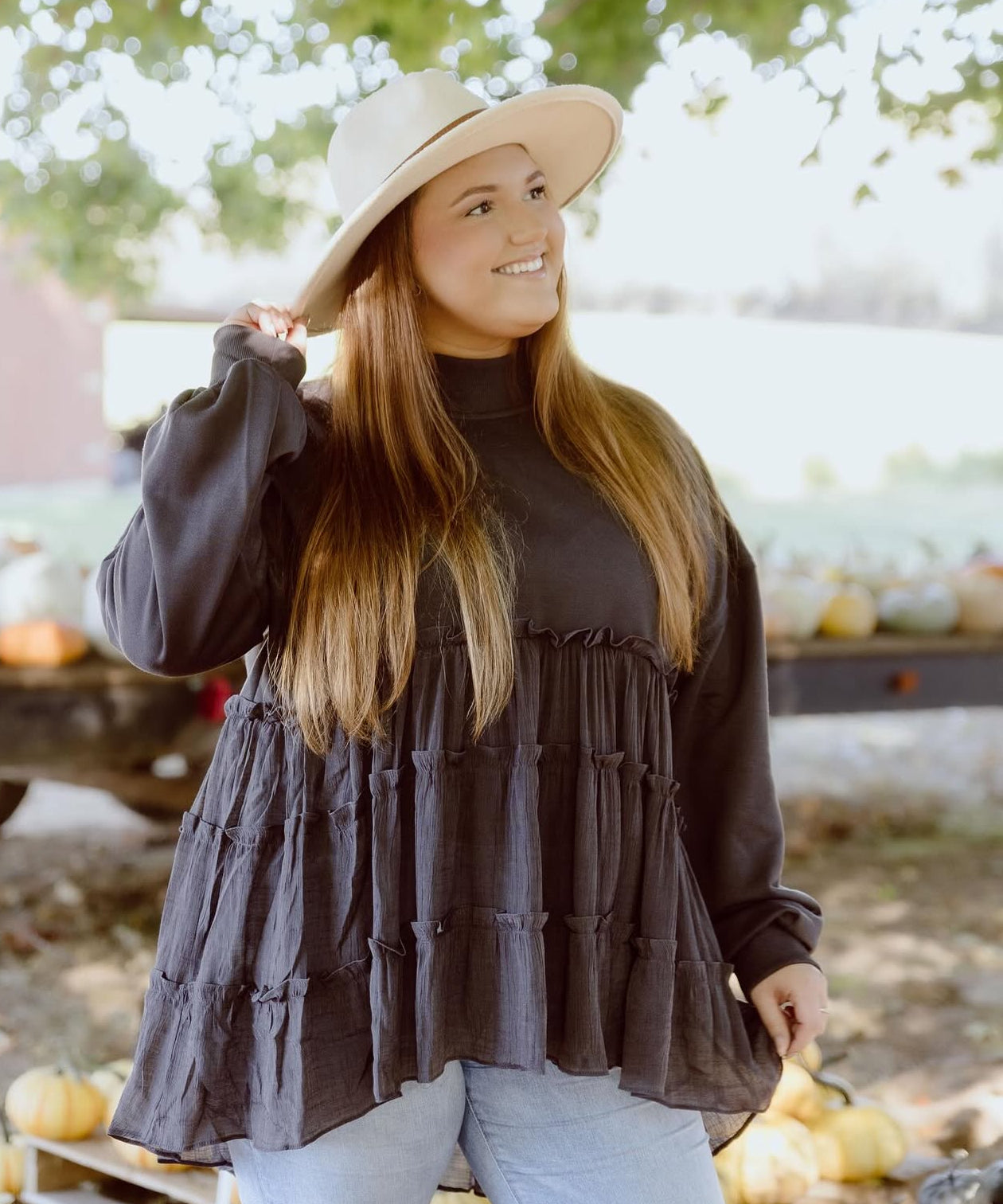 MOCK NECK TUNIC KNIT HI LOW TOP | PLUS